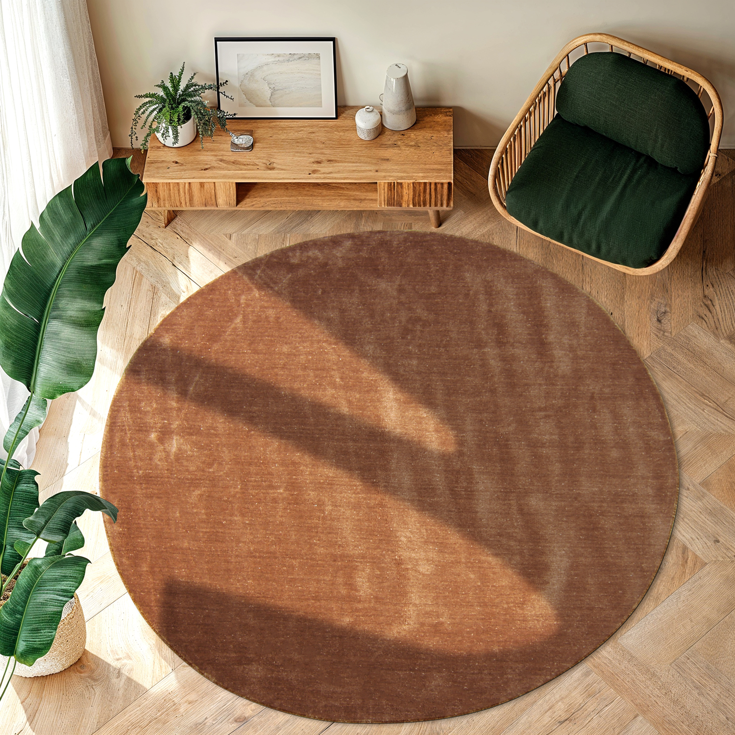 Tappeto rotondo - Recycled PET with viscose look (bruin)